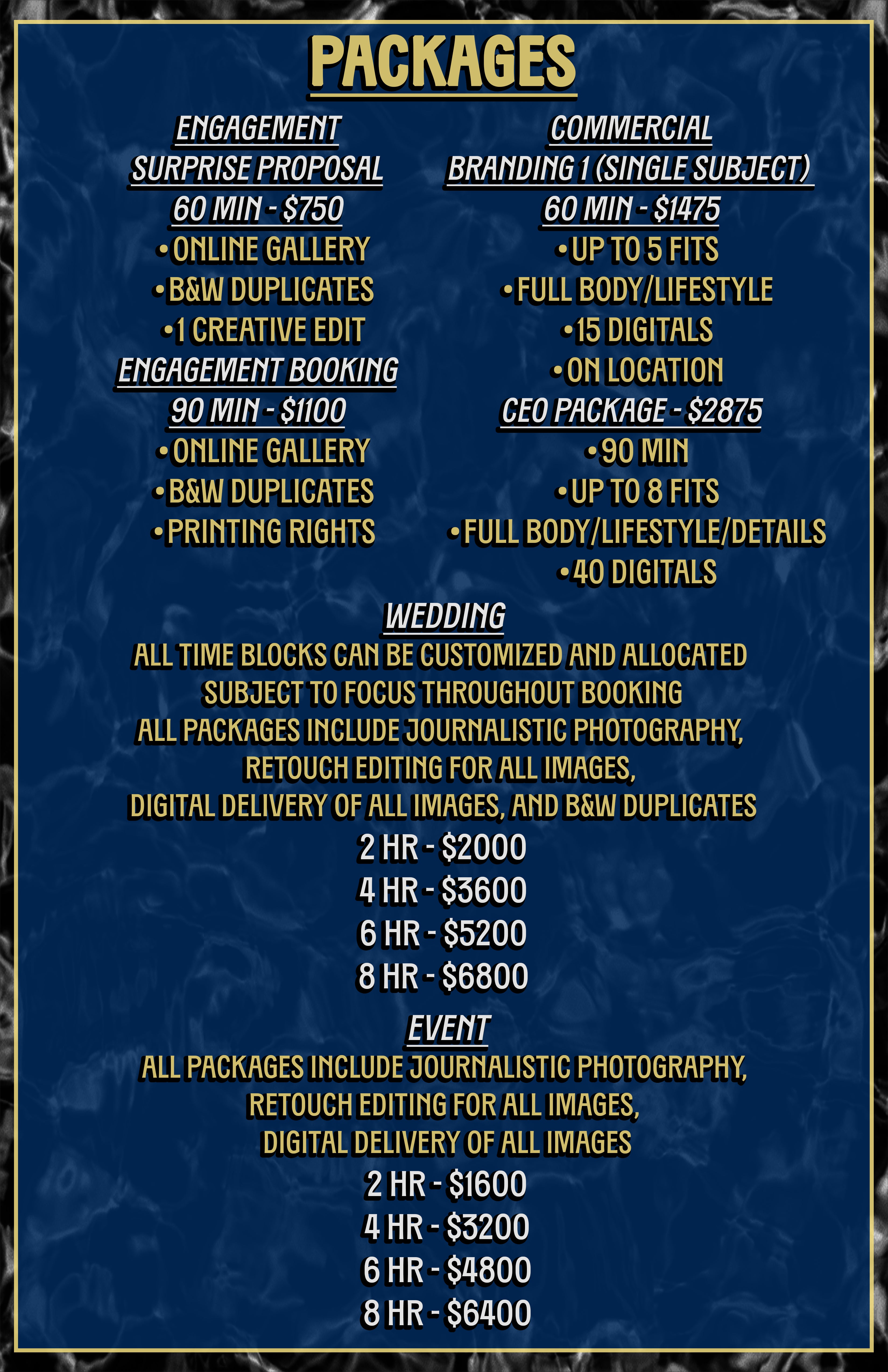 To book, email ShotByV1@gmail.com with: